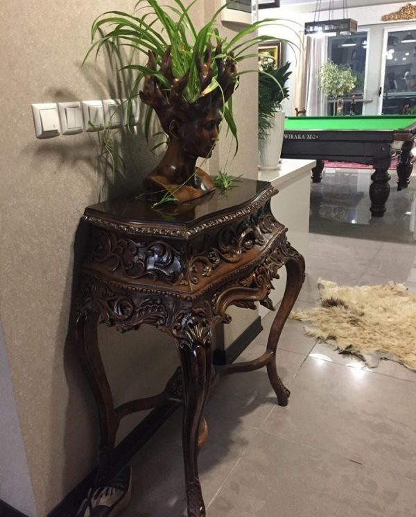 این اثر از جنس فایبرگلاس رنگ چوب، نشکن و تضمینی است. گلدان مغز سبز رنگ چوب ارتفاع 50 سانت 1/500/000 است.