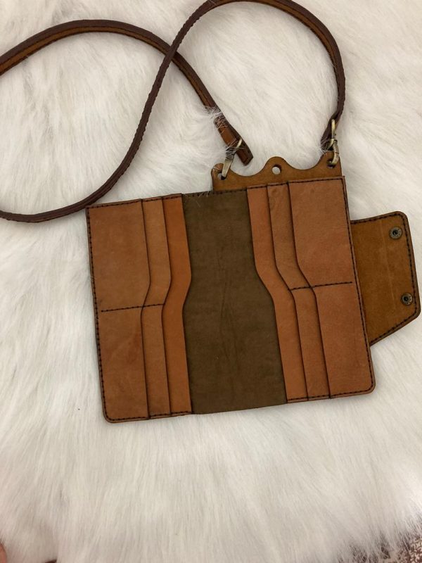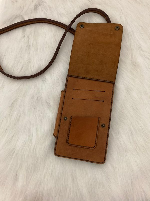 کیف کج رودوشی دارای جای کارت و موبایل و پول نقد، چرم مصرفی شتر و رنگ عسلی